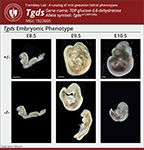 Tgdsem1(IMPC)Mbp/Tgdsem1(IMPC)Mbp embryos have abnormal head shape, abnormal hearts accompanied by cardiac or pericardial edema, abnormal yolk sac morphology, and branchial arch defects and incomplete turning at E9.5. By E10.5, embryos are grossly abnormal.