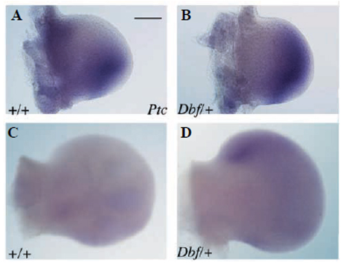 Ptc was expressed in a broad anteroposterior band that extends further anteriorly.