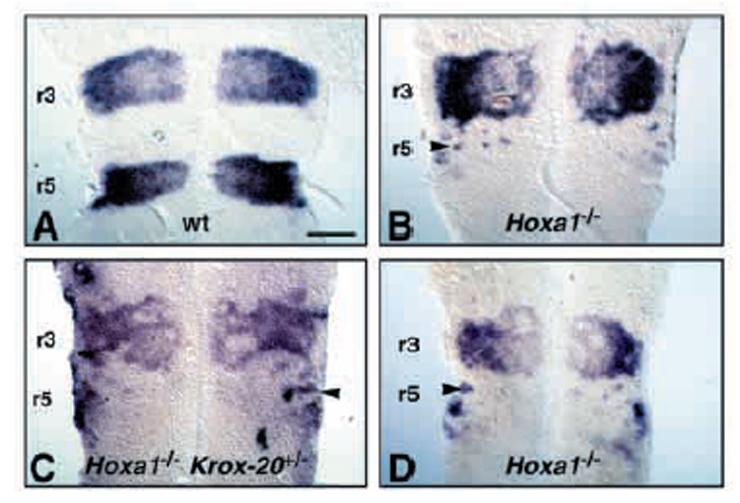 Reference: J:50514 Helmbacher F, et al., Hoxa1 and Krox-20 synergize to control the development of rhombomere 3. Development. 1998 Dec;125(23):4739-48