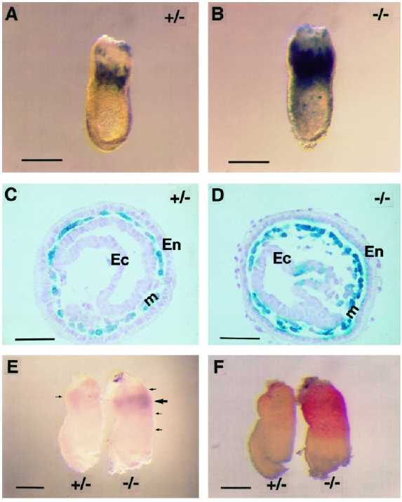 TS10: extraembryonic component Strong Regionally restricted 1E -/- Expression in this mutant is stronger than in the heterozygote. Expression is in hemangioblasts.