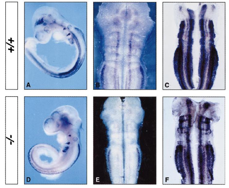 Expression in the ventral hindbrain is markedly decreased, while it is less affected dorsally.