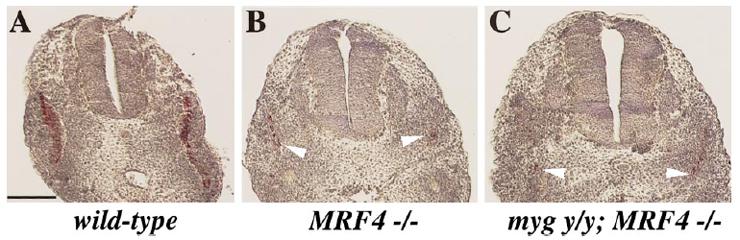 Vivian JL, et al., Thoracic skeletal defects in myogenin- and MRF4-deficient mice correlate with early defects in myotome and intercostal musculature. Dev Biol. 2000 Aug 1;224(1):29-41