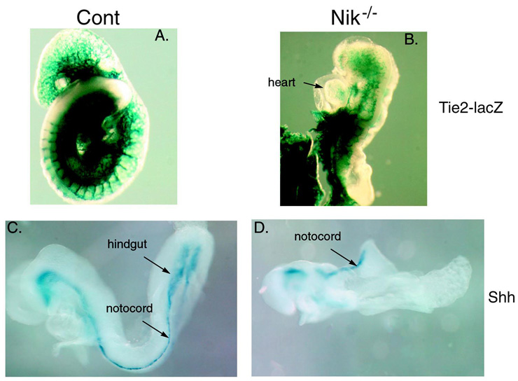 Xue Y, et al., Mesodermal patterning defect in mice lacking the Ste20 NCK interacting kinase (NIK). Development. 2001 May;128(9):1559-72