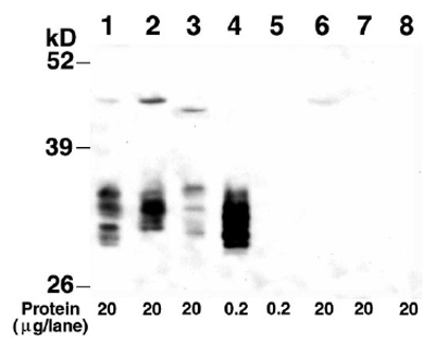 (a) The proteins range in size from 29-35kDa. The 45kDa band is not encoded by this gene. |
