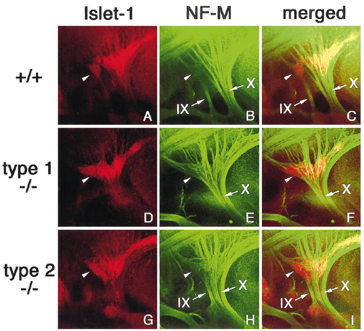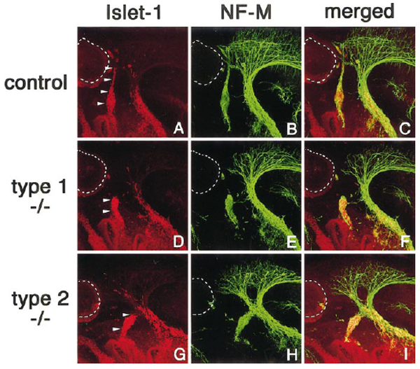 Note: Type 1 mutant. Double labeled: red - Isl1; green - Nefm (assay MGI:2156493).
