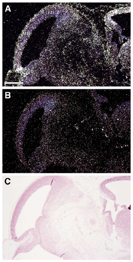 TS20: cerebral cortex Present Regionally restricted 1E12 Expression is in the roof.
