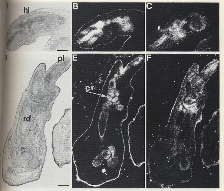 TS19: handplate mesenchyme Present Uniform 4F Expression is distributed diffusely in the mesenchyme.