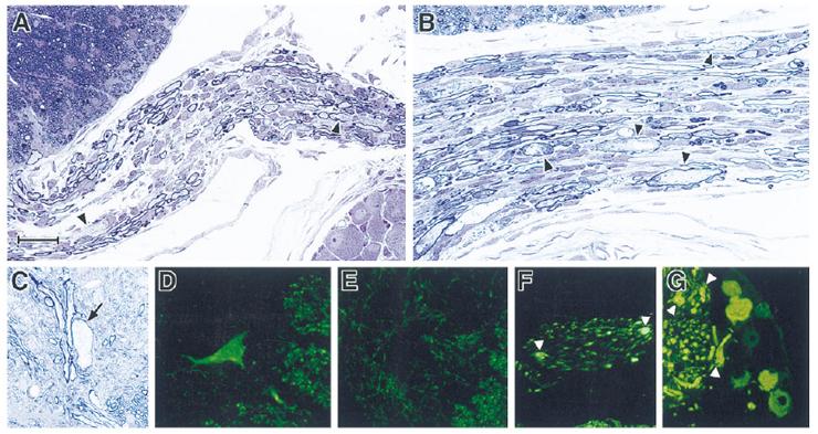 TS28: dorsal root ganglion Present 7G Abnormal expression was detected in the perikarya of cell bodies and was intense in axonal swellings.