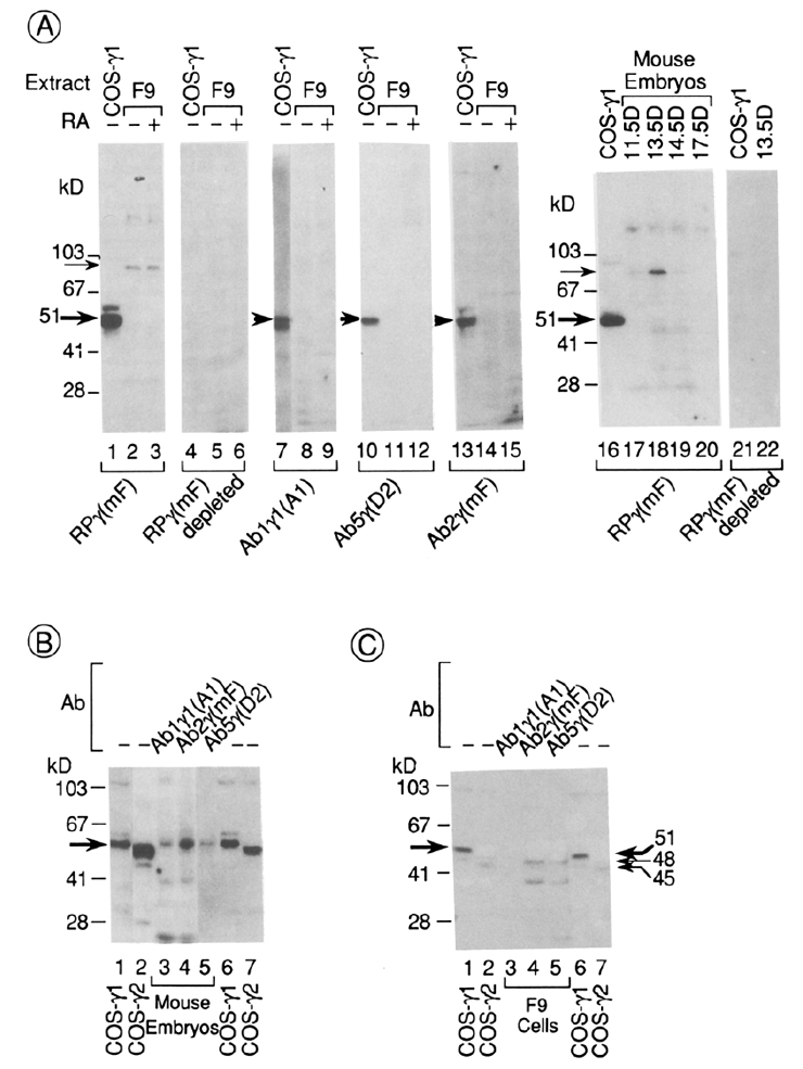 Reference: J:92580 Rochette-Egly C, et al., Retinoic acid receptor gamma: specific immunodetection and phosphorylation. J Cell Biol. 1991 Oct;115(2):535-45