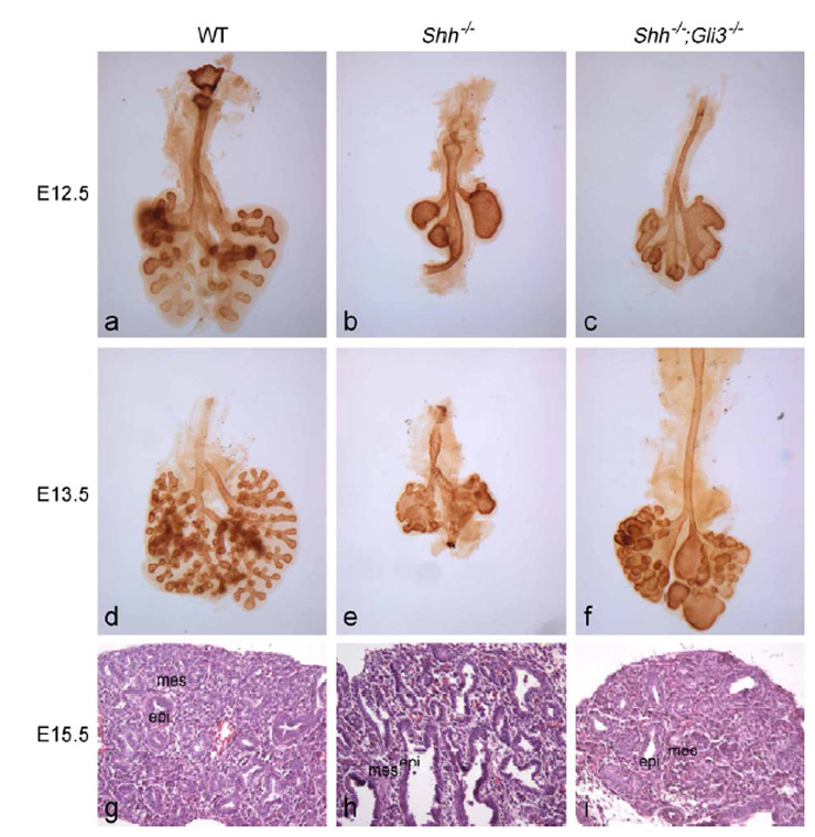 Li Y, et al., Sonic hedgehog signaling regulates Gli3 processing, mesenchymal proliferation, and differentiation during mouse lung organogenesis. Dev Biol. 2004 Jun 1;270(1):214-31