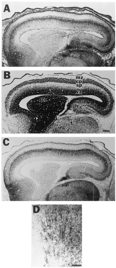 TS24: cerebral cortex Present Regionally restricted 1C Expression is present in the subplate and marginal zone.