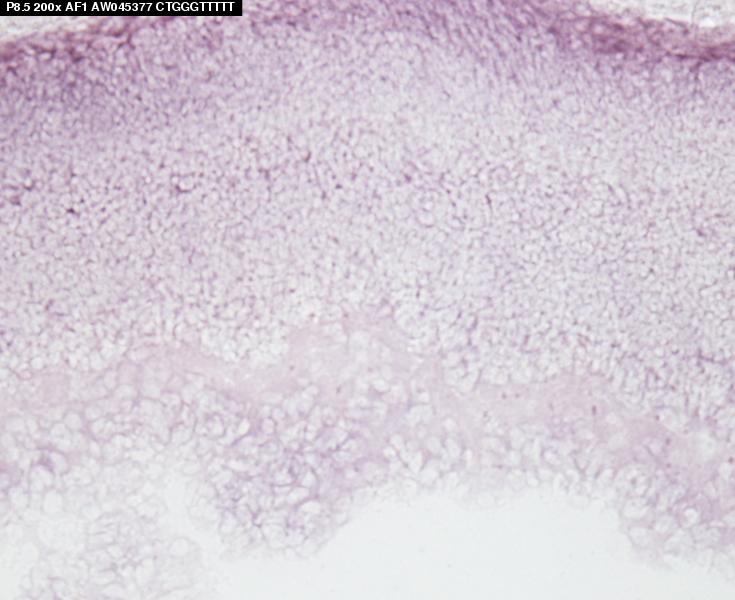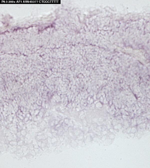 Assay notes: This data is from Supplemental Table 5, Gene column, row: 103809 Rcd1 (required for cell differentiation) . After cryosectioning, tissue was fixed for 10' in 4% paraformaldehyde prior to processing.