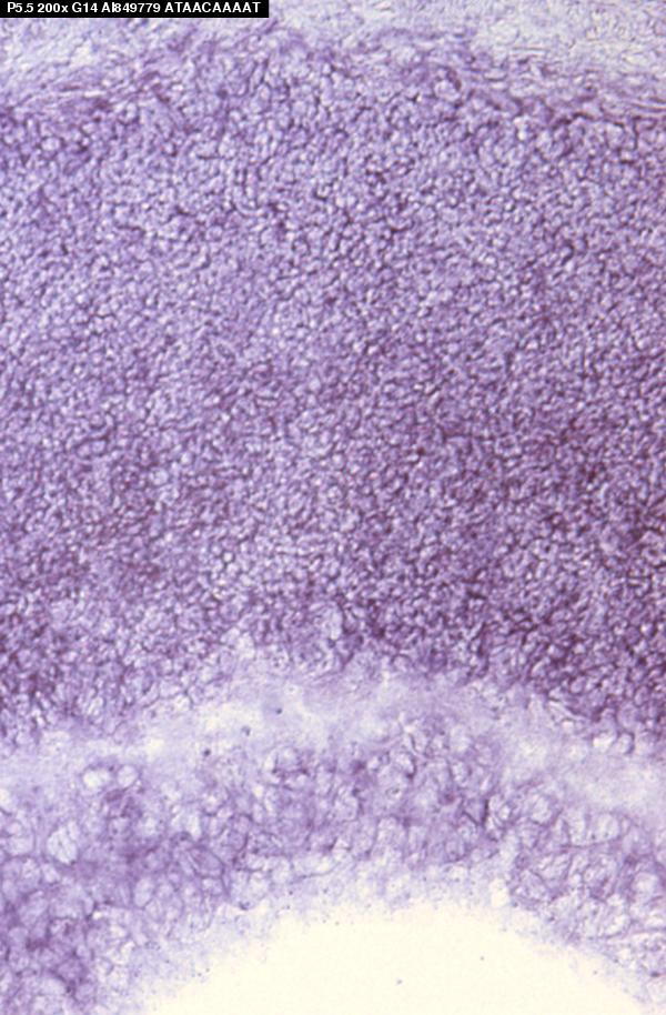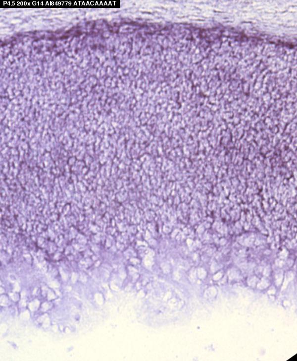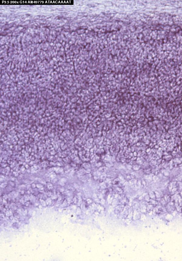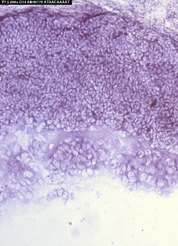 Assay notes: This data is from Supplemental Table 5, Gene column, row: 154145 ESTs/Zn finger. After cryosectioning, tissue was fixed for 10' in 4% paraformaldehyde prior to processing.