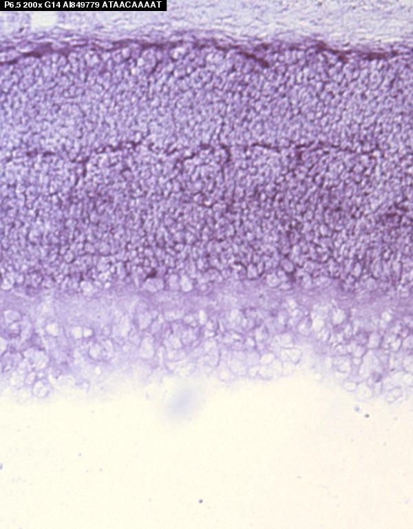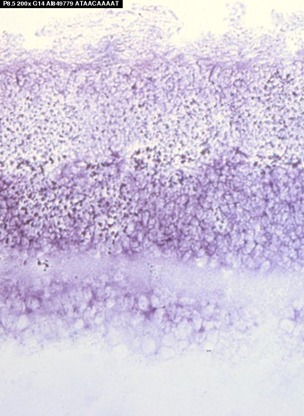 TS28: retina outer nuclear layer Present Submitted Image - g14P4.5 , Submitted Image - g14P5.5 Expression was detected in the outer neuroblastic layer but was higher in the vitreal outer neuroblastic layer.