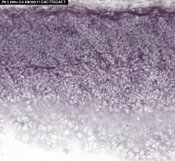 Assay notes: This data is from Supplemental Table 5, Gene column, row: 173826 dymeclin. After cryosectioning, tissue was fixed for 10' in 4% paraformaldehyde prior to processing.