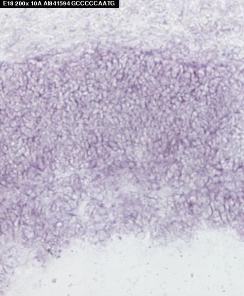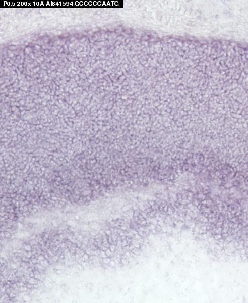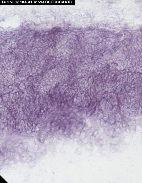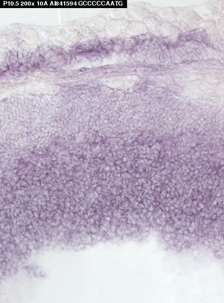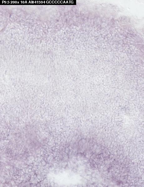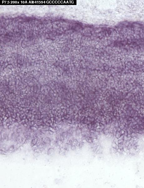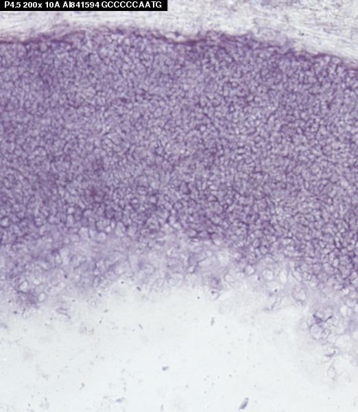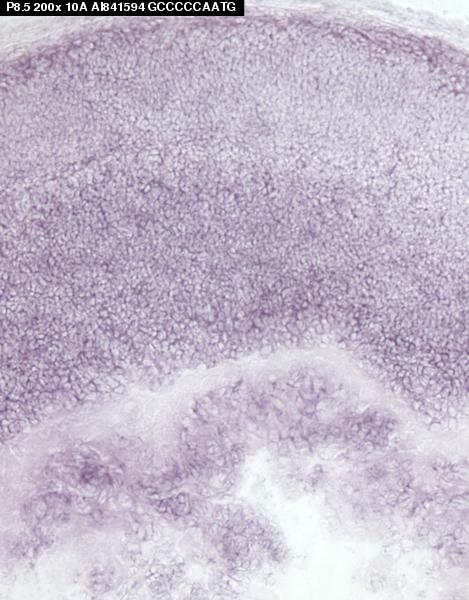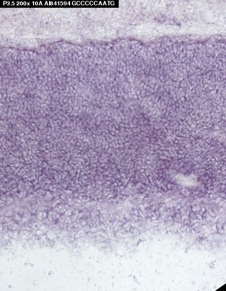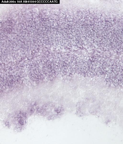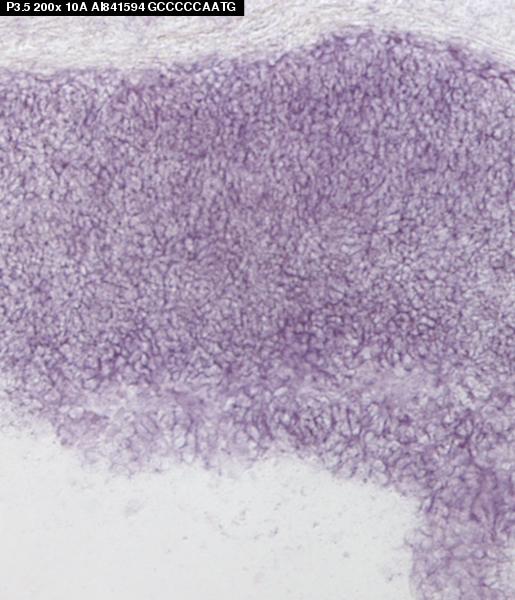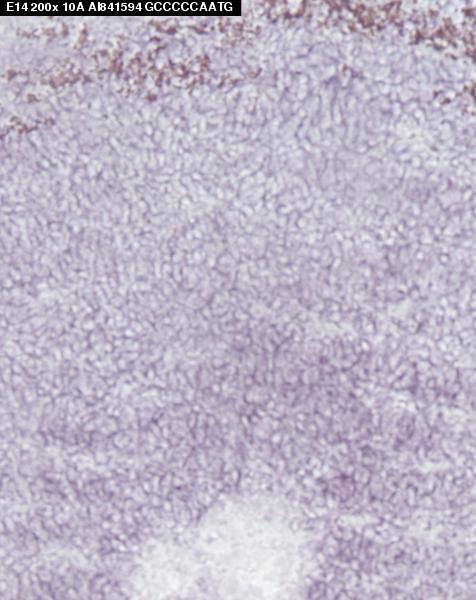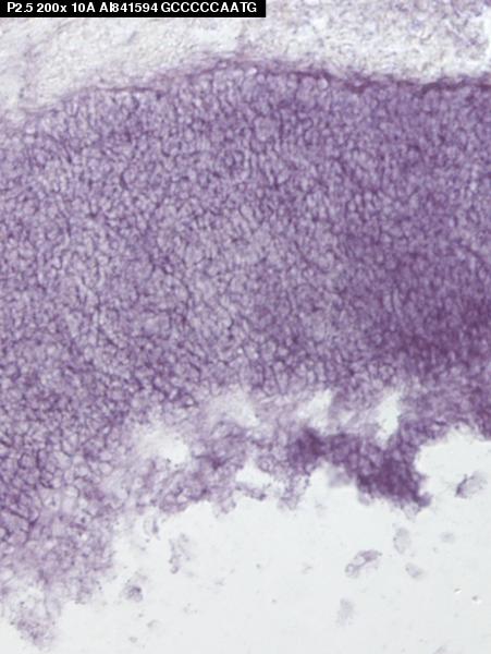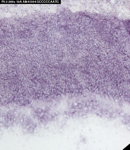 Assay notes: This data is from Supplemental Table 5, Gene column, row: 196727 ESTs . After cryosectioning, tissue was fixed for 10' in 4% paraformaldehyde prior to processing.