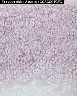 TS22: neural retinal epithelium Present Regionally restricted Submitted Image - am82e14 Expression was detected in the outer neuroblastic layer.
