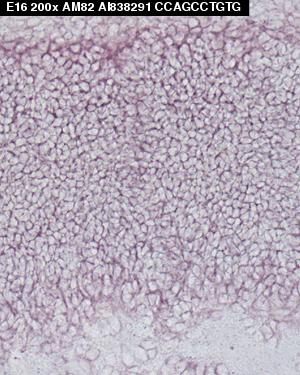 TS24: retina nuclear layer Present Regionally restricted Submitted Image - am82e16 Expression was detected in the outer neuroblastic layer.