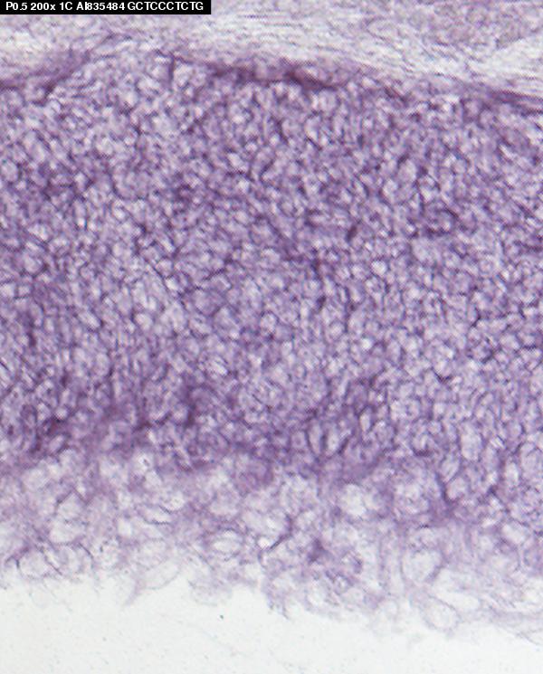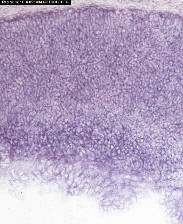 Assay notes: This data is from Supplemental Table 5, Gene column, row: 43640 ESTs . After cryosectioning, tissue was fixed for 10' in 4% paraformaldehyde prior to processing.