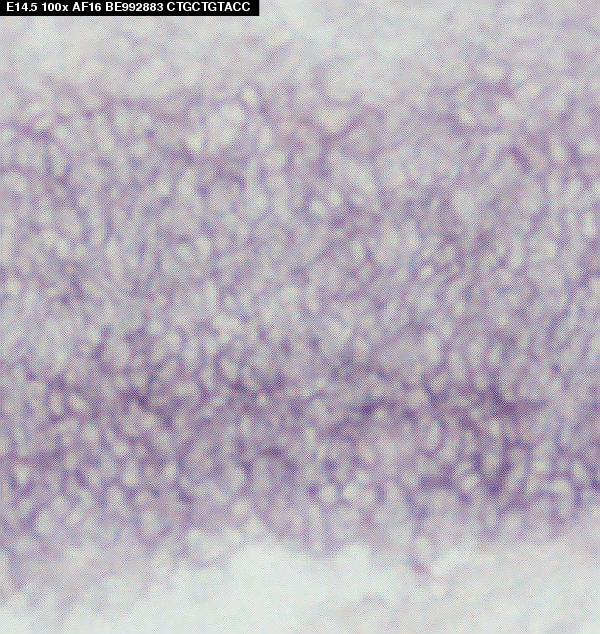 TS22: neural retinal epithelium Present Regionally restricted Submitted Image - AF16e14.5 Expression was detected in the inner neuroblastic layer and in a subset of cells in the outer neuroblastic layer.