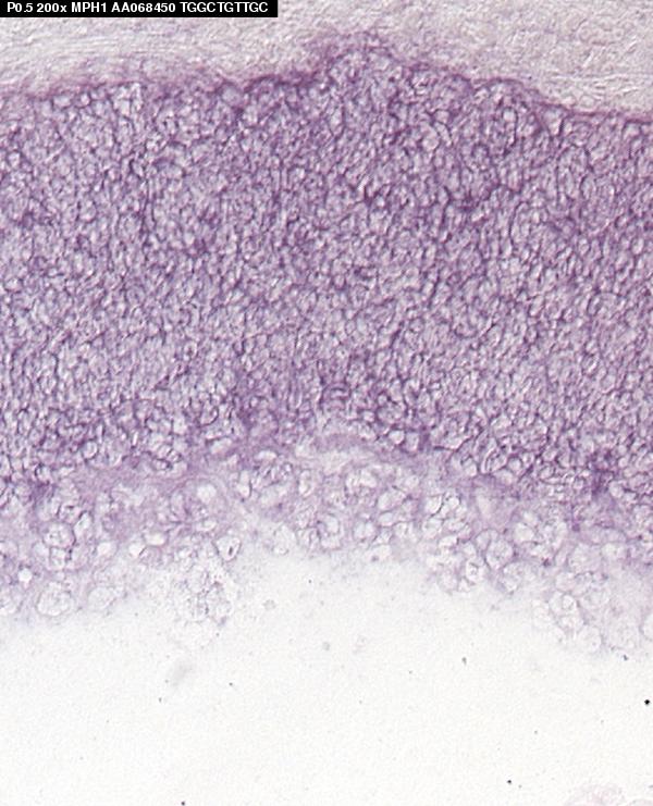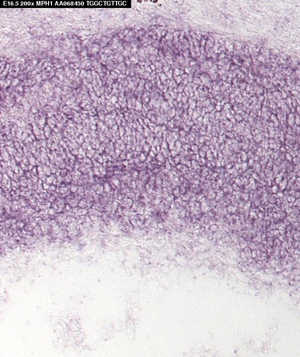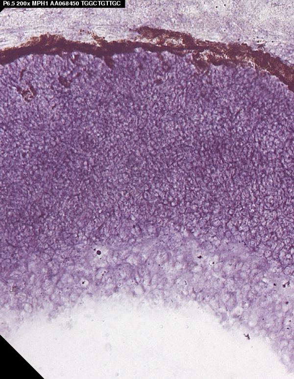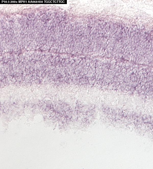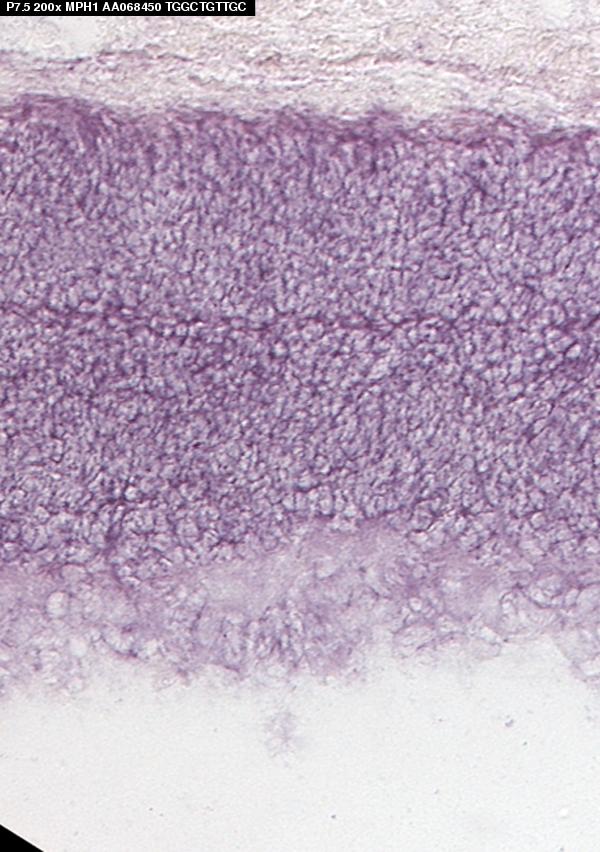 TS27: retina outer nuclear layer Present Submitted Image - mph1P1.5 , Submitted Image - mph1P0.5 Expression was detected in the outer neuroblastic layer.