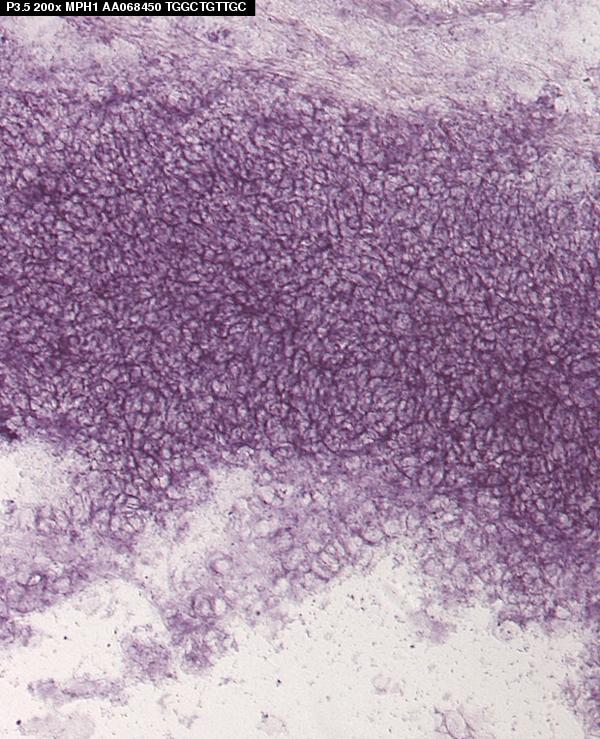 Assay notes: This data is from Supplemental Table 5, Gene column, row: 6822 Mph1. After cryosectioning, tissue was fixed for 10' in 4% paraformaldehyde prior to processing.