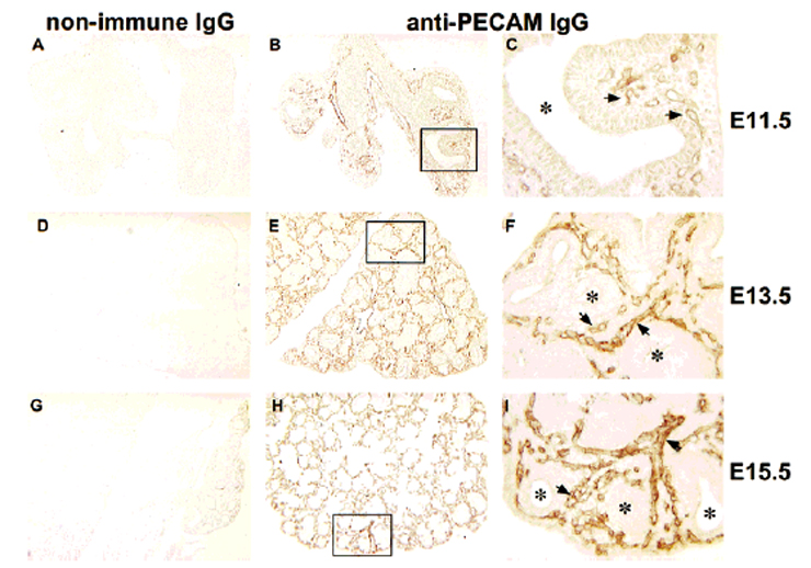 Reference: J:65677 Healy AM, et al., VEGF is deposited in the subepithelial matrix at the leading edge of branching airways and stimulates neovascularization in the murine embryonic lung. Dev Dyn. 2000 Nov;219(3):341-52