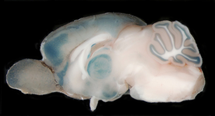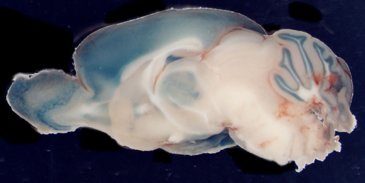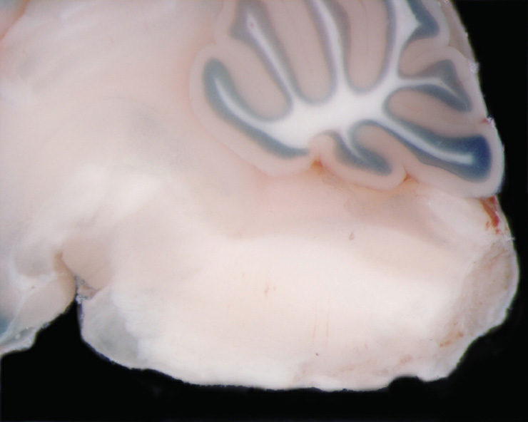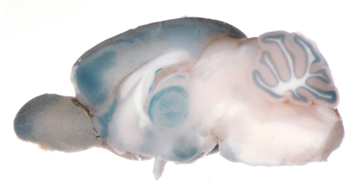 TS28: brainstem Trace 12288448 There is scattered expression in the brainstem.