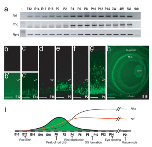 Reference: J:107155 Akimoto M, et al., Targeting of GFP to newborn rods by Nrl promoter and temporal expression profiling of flow-sorted photoreceptors. Proc Natl Acad Sci U S A. 2006 Mar 7;103(10):3890-5