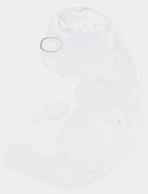 Assay notes: Specimen information for this assay was downloaded from GenePaint (www.genepaint.org). Cryosections of fresh frozen material were fixed in 4% paraformaldehyde for 20 min. before further processing. A tyramidebiotin/streptavidin amplification step was included in the in situ hybridization procedure.