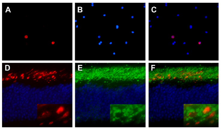 Note: Double labeled: red - Opn1sw; green - Rho (assay MGI:3835023).