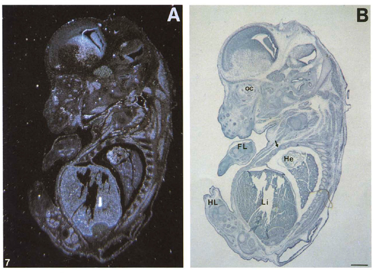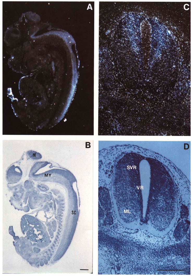 Expression is found all along the antero-posterior axis of the developing neural tube, with a restriction to the dorsal alar plate.