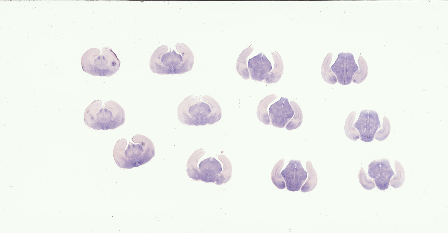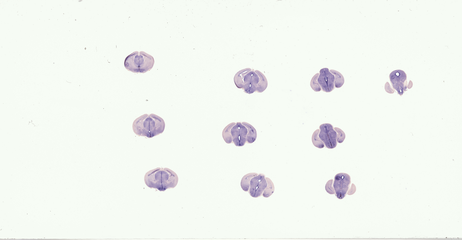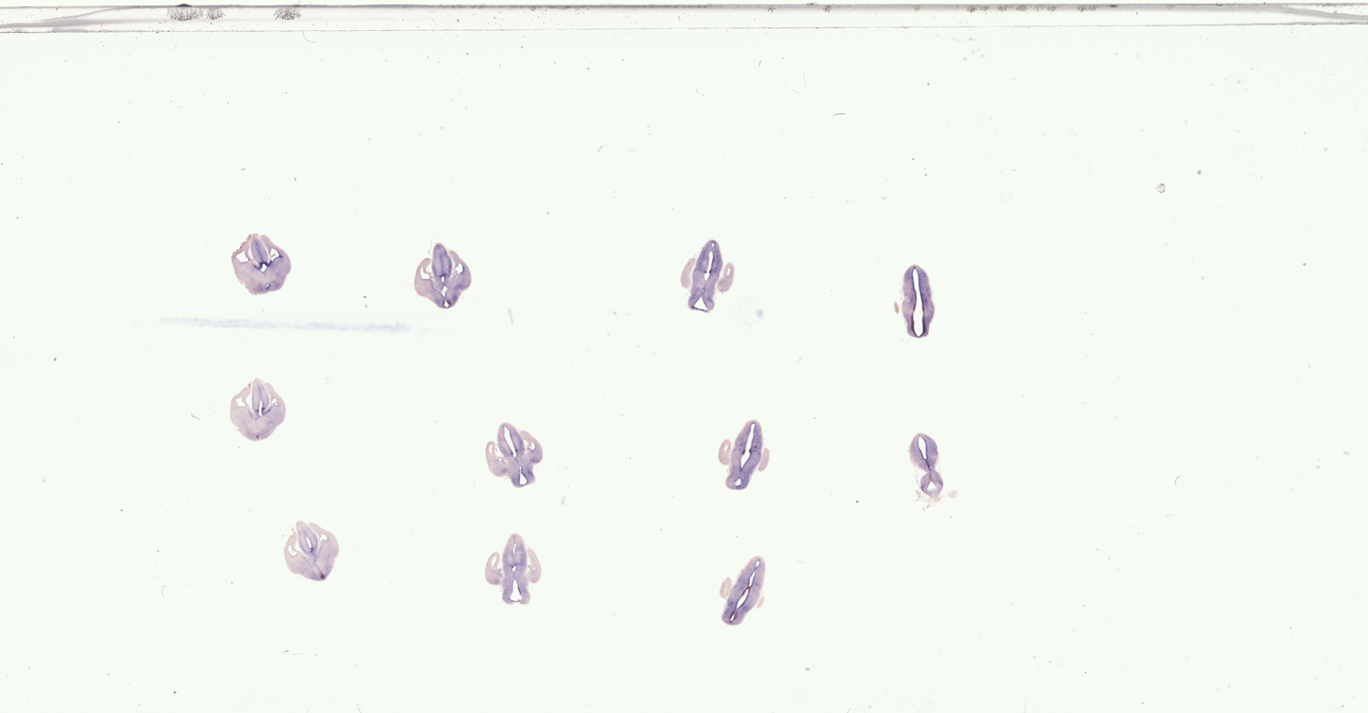 There is weak staining in the mantle zone of the dorsal thalamus and prethalamus.