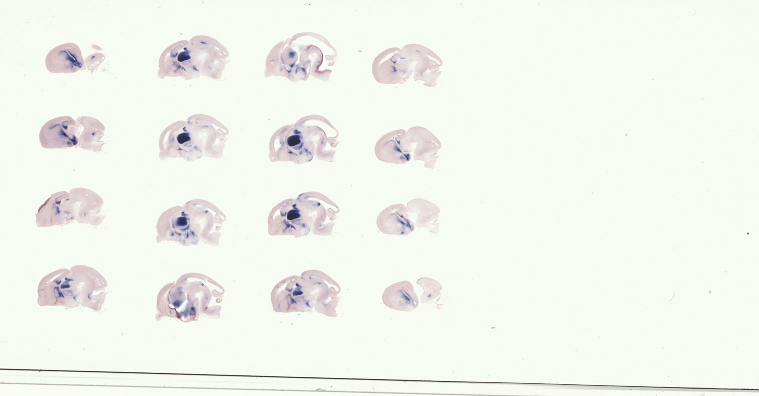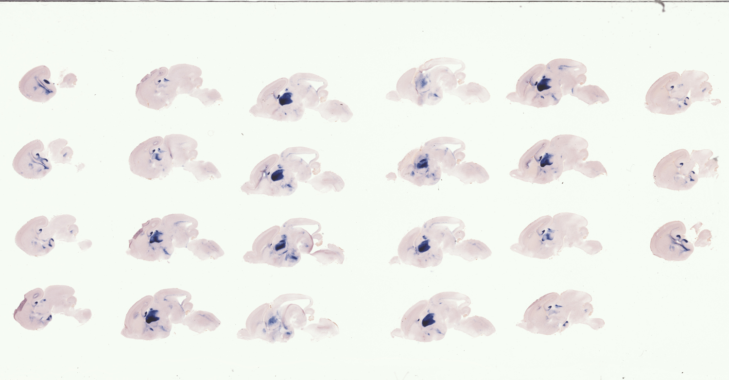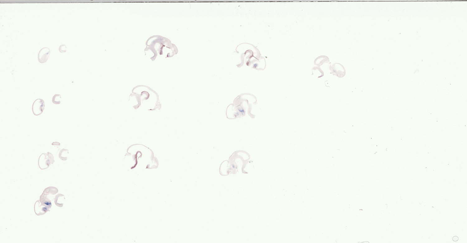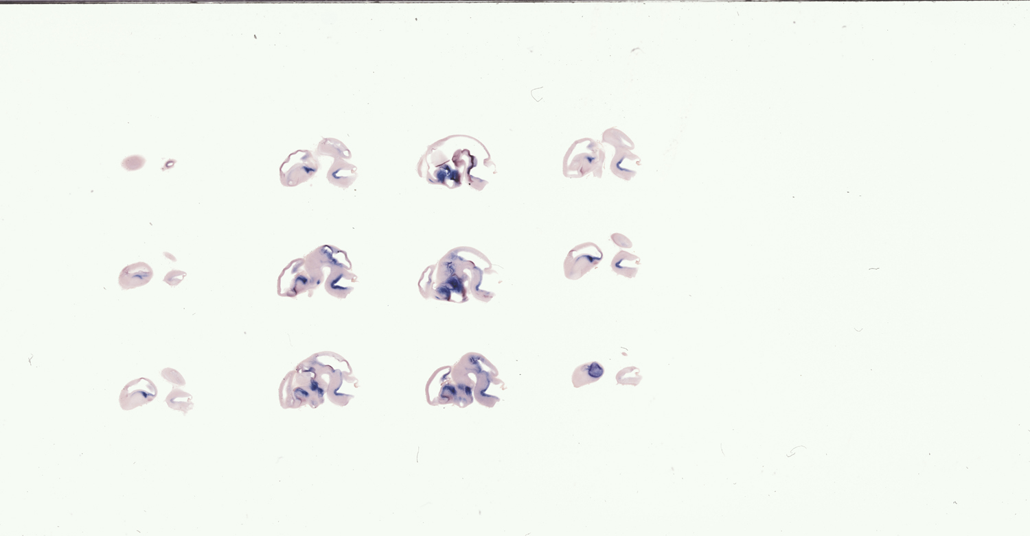 Assay notes: These specimens were also hybridized with a fluorescein-labeled Shh probe MGI:2110655; detected with TBT/BCIP. The results are reported in Supp. Table 4, whose legend includes a key to the abbreviations used and more fully details the regions examined.