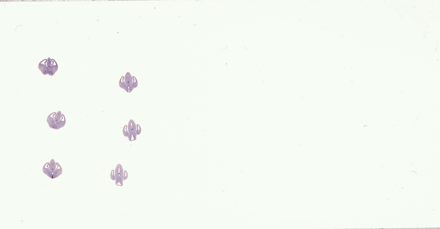 There is moderate, scattered staining in the ventricular zone of the premam, mam and supramam zones.
