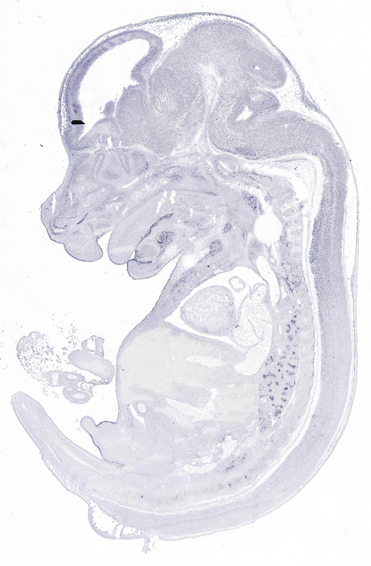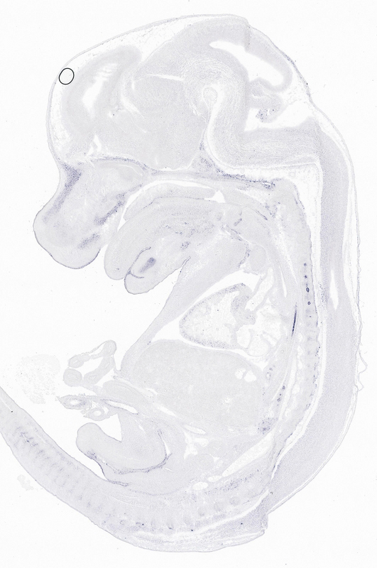 Reference: J:153498 Diez-Roux G, et al., A high-resolution anatomical atlas of the transcriptome in the mouse embryo. PLoS Biol. 2011;9(1):e1000582