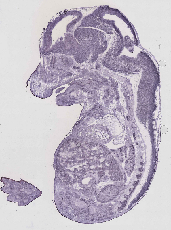 Reference: J:153498 Diez-Roux G, et al., A high-resolution anatomical atlas of the transcriptome in the mouse embryo. PLoS Biol. 2011;9(1):e1000582
