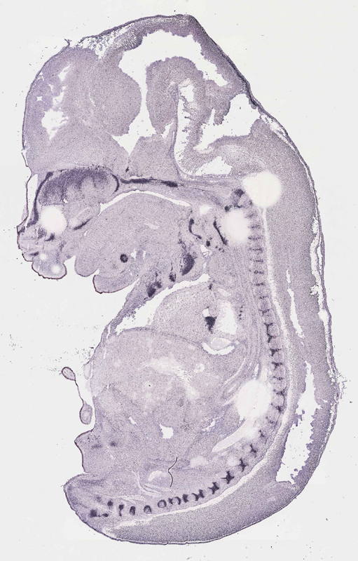 Reference: J:153498 Diez-Roux G, et al., A high-resolution anatomical atlas of the transcriptome in the mouse embryo. PLoS Biol. 2011;9(1):e1000582