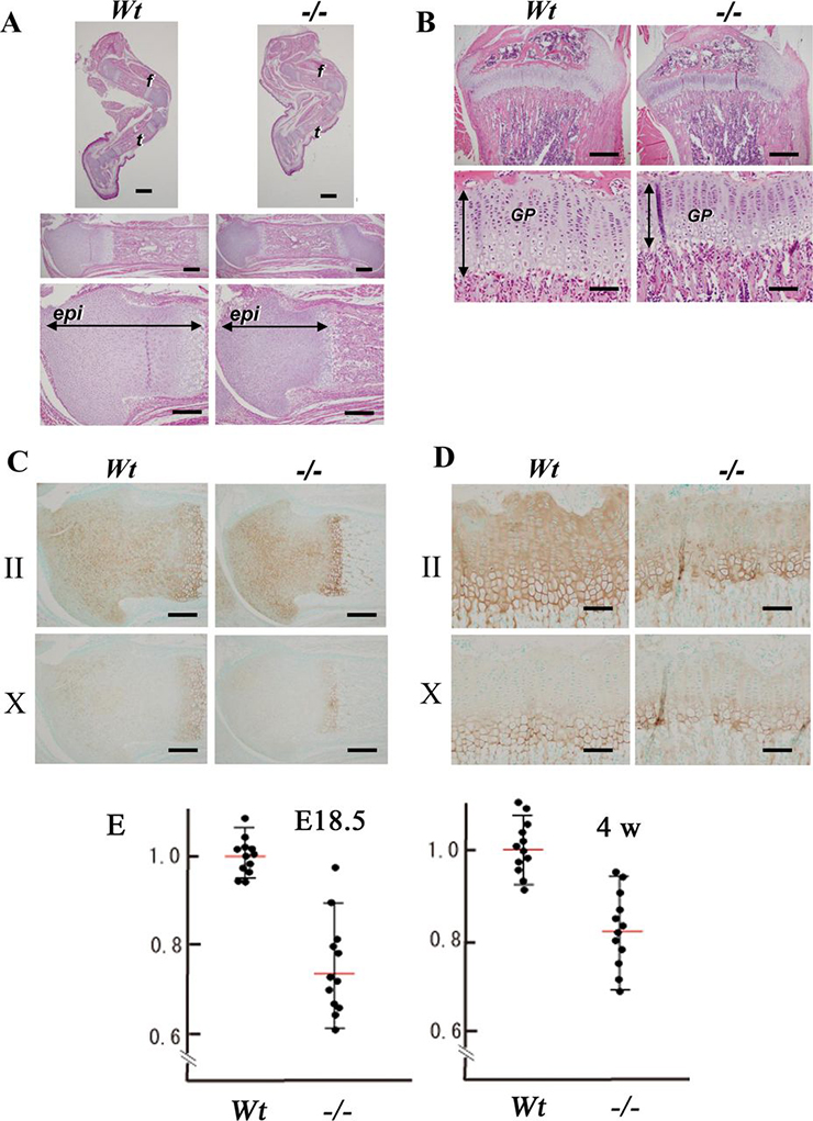 Expression is in the hypertrophic zone which was slightly reduced in size in this mutant.
