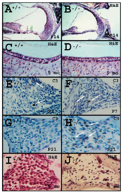 Wallis D, et al., The zinc finger transcription factor Gfi1, implicated in lymphomagenesis, is required for inner ear hair cell differentiation and survival. Development. 2003 Jan;130(1):221-32