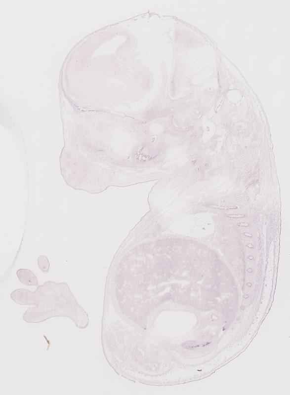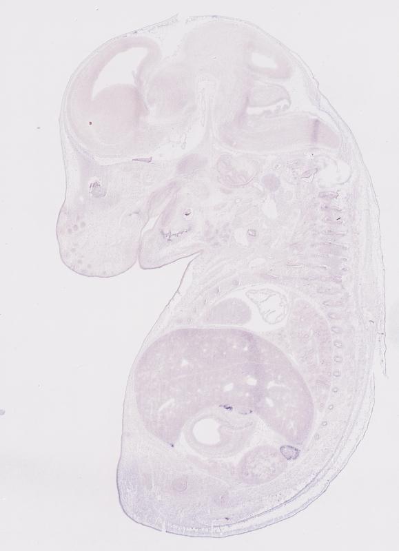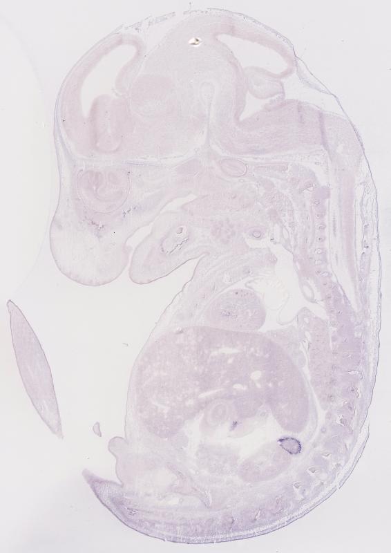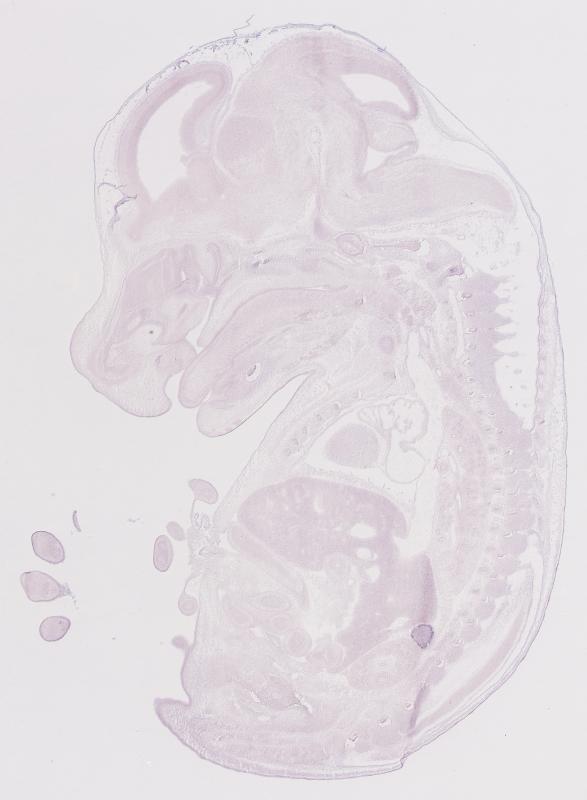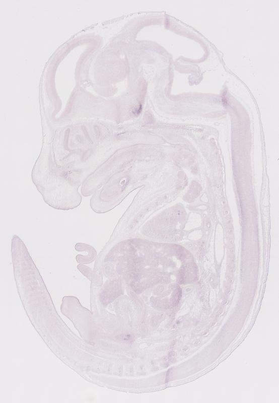 Reference: J:122989 Visel A, et al., GenePaint.org: an atlas of gene expression patterns in the mouse embryo. Nucleic Acids Res. 2004 Jan 1;32(Database issue):D552-6