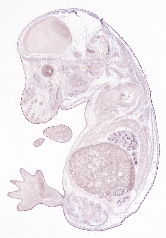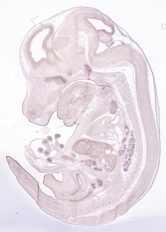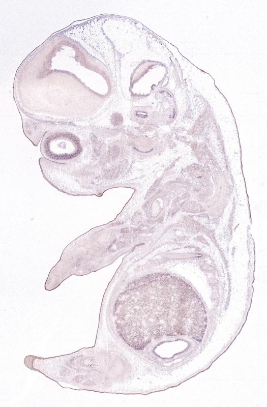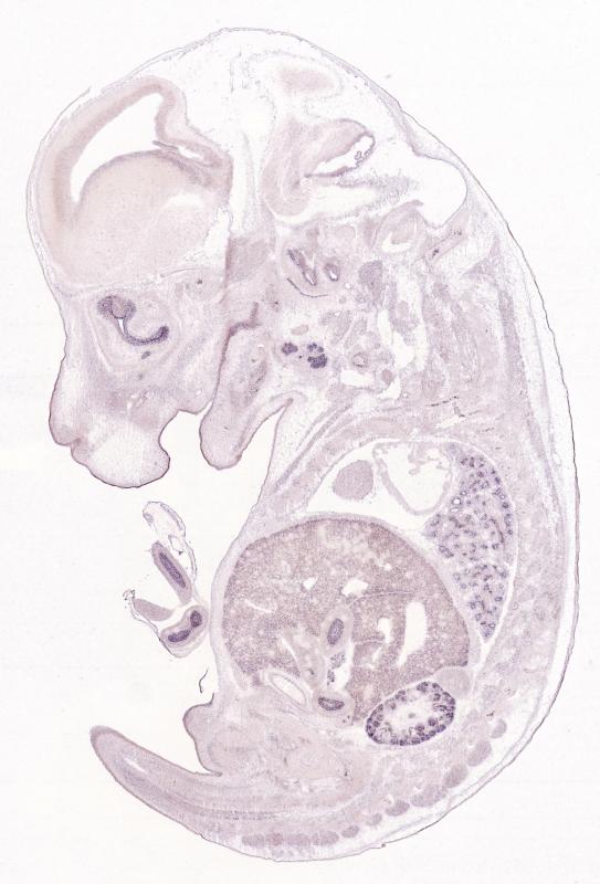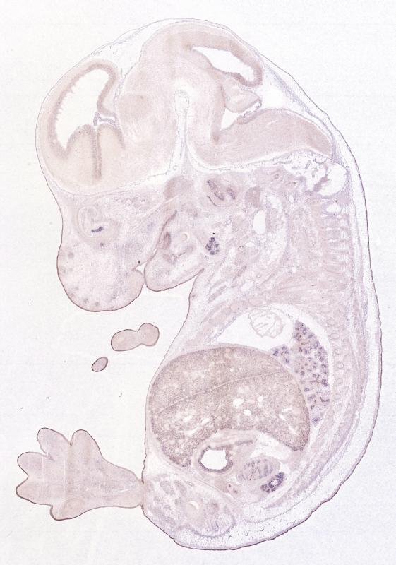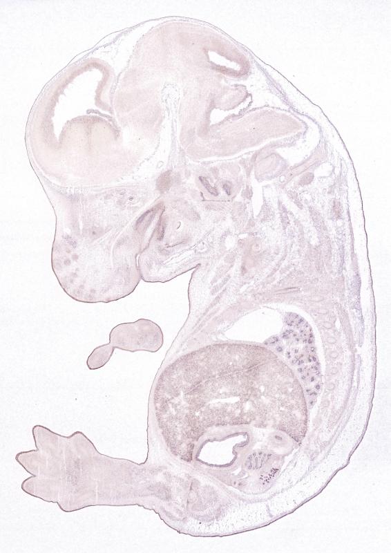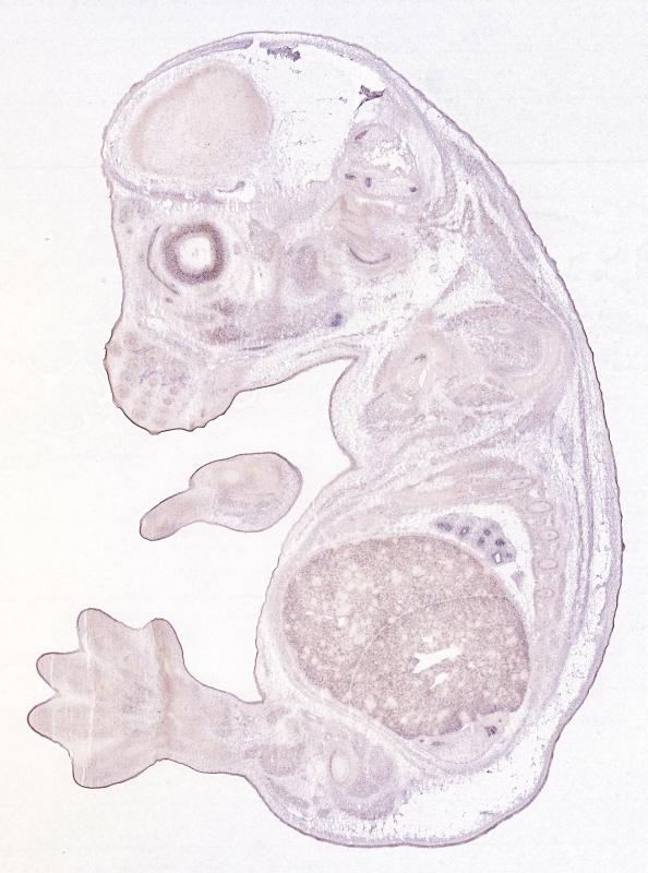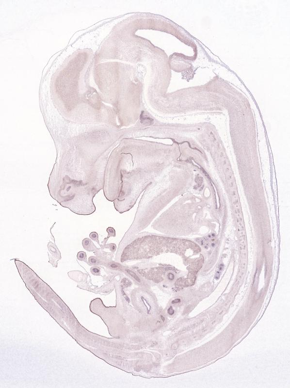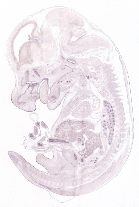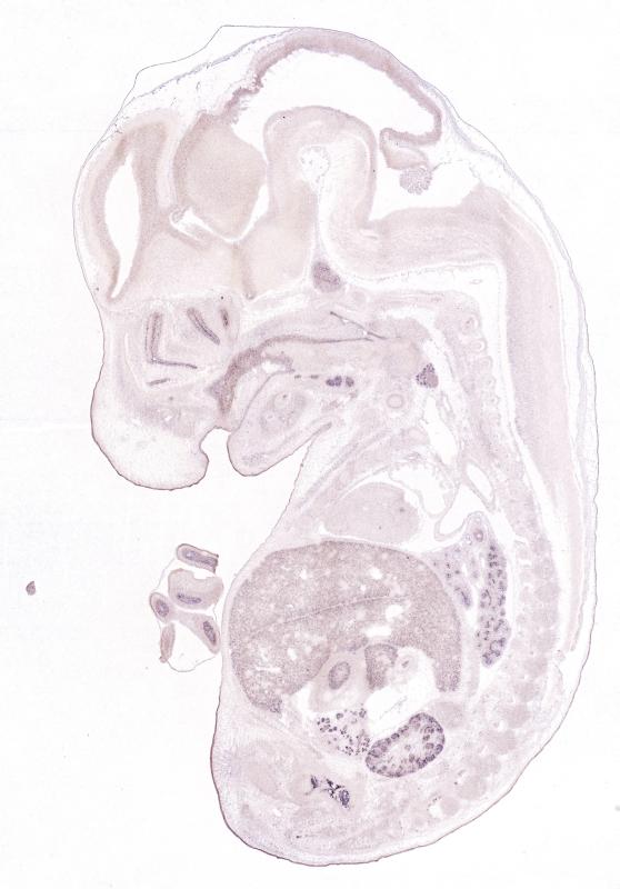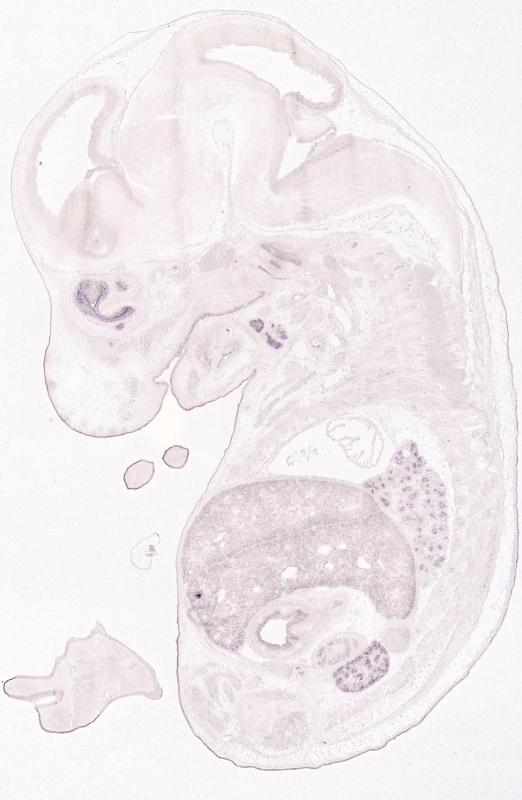 Reference: J:122989 Visel A, et al., GenePaint.org: an atlas of gene expression patterns in the mouse embryo. Nucleic Acids Res. 2004 Jan 1;32(Database issue):D552-6