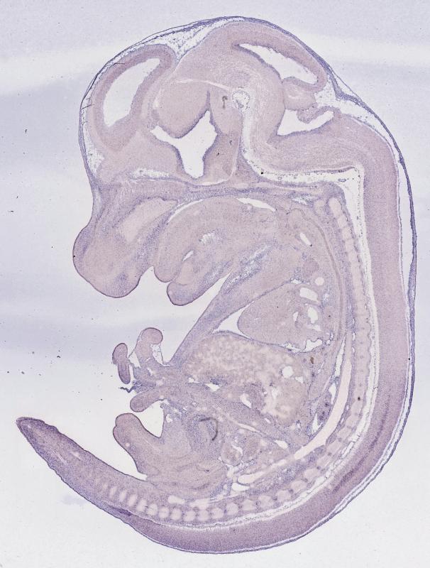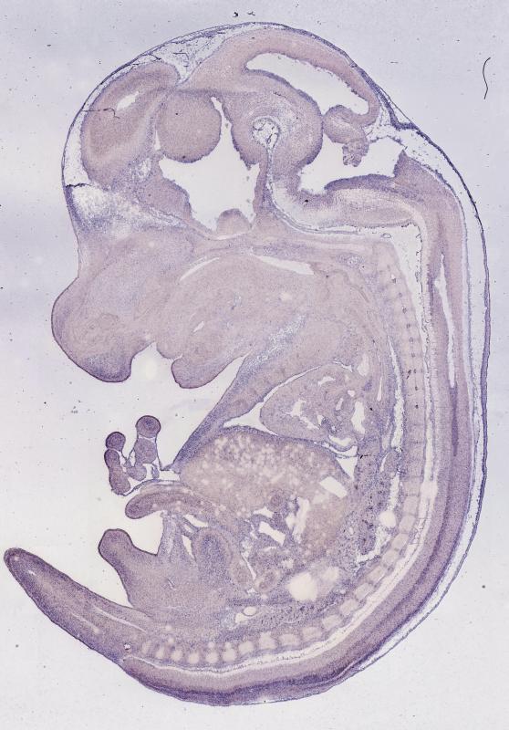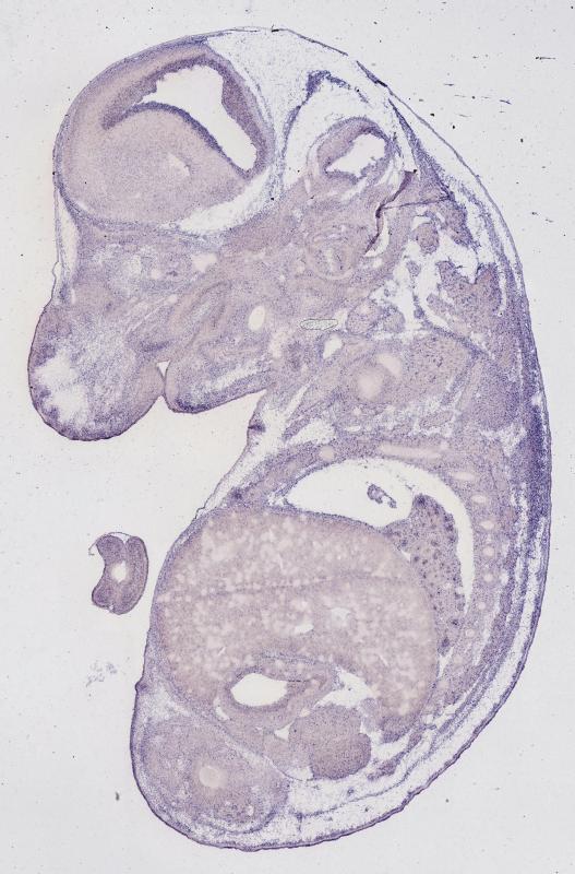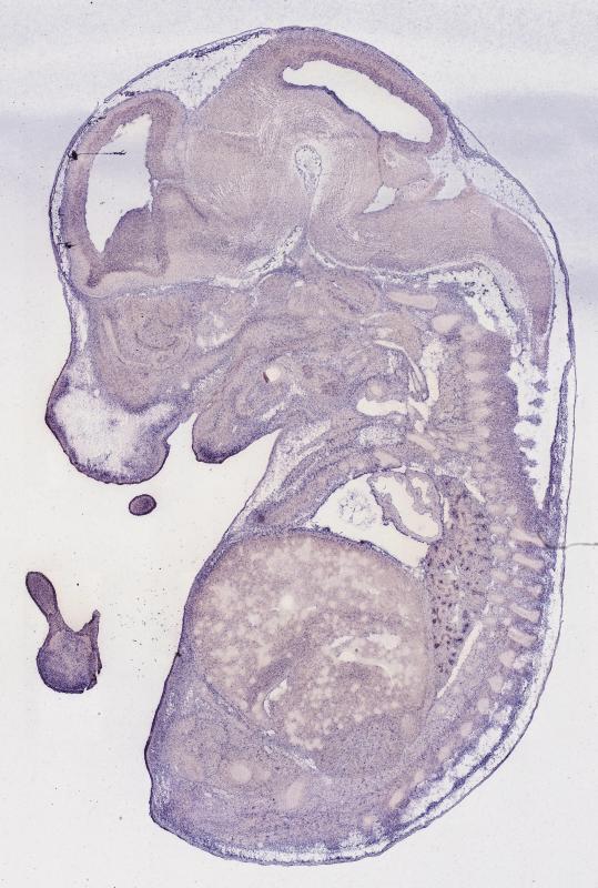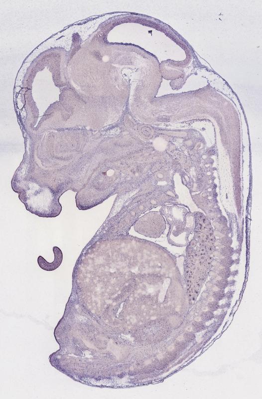 Reference: J:122989 Visel A, et al., GenePaint.org: an atlas of gene expression patterns in the mouse embryo. Nucleic Acids Res. 2004 Jan 1;32(Database issue):D552-6
