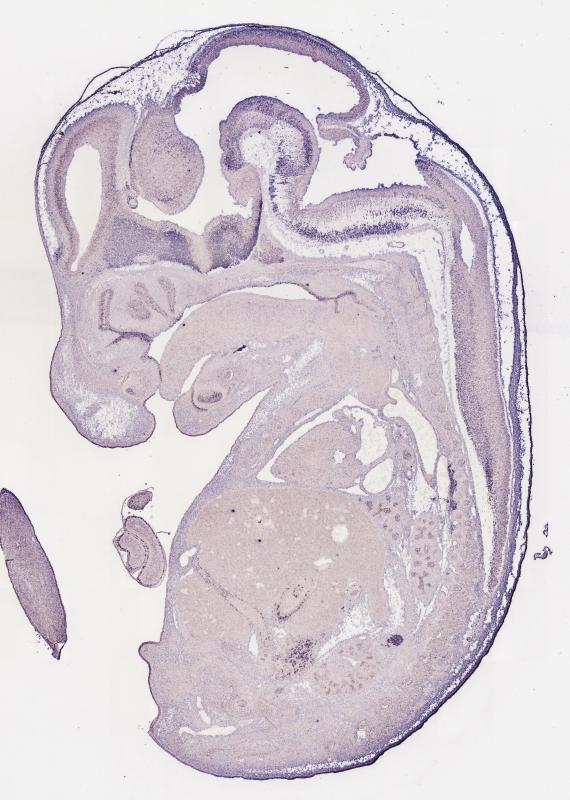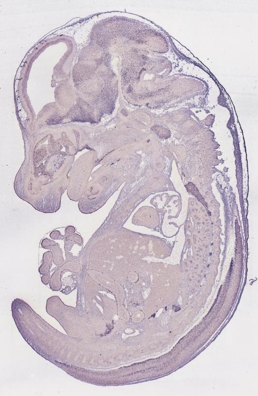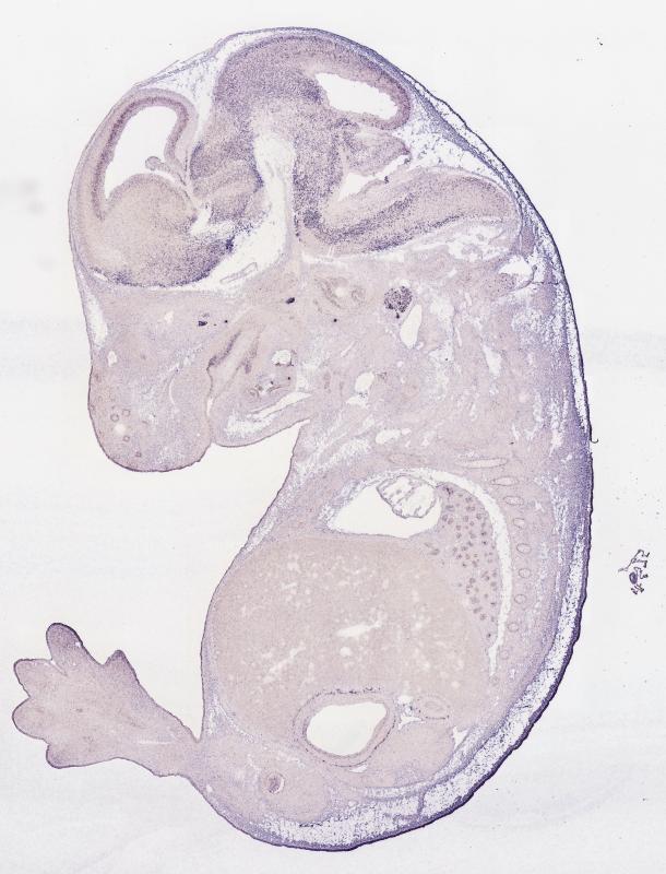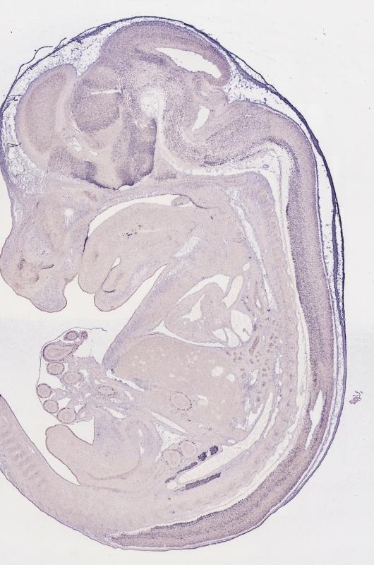 Reference: J:122989 Visel A, et al., GenePaint.org: an atlas of gene expression patterns in the mouse embryo. Nucleic Acids Res. 2004 Jan 1;32(Database issue):D552-6