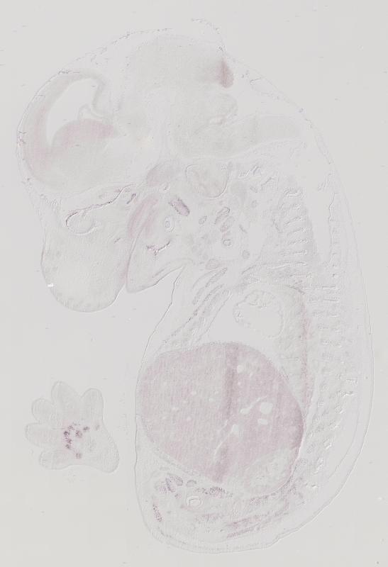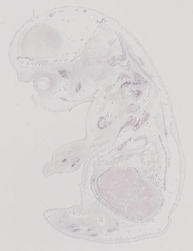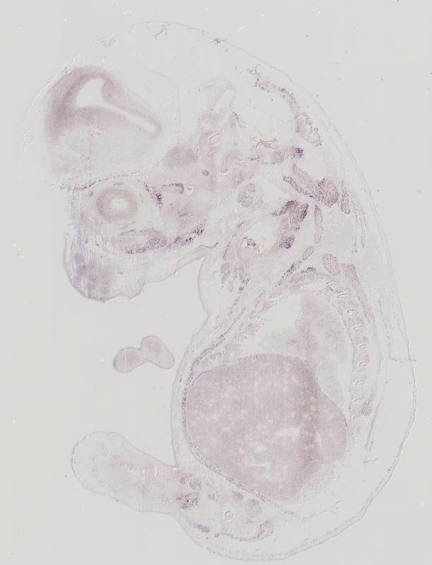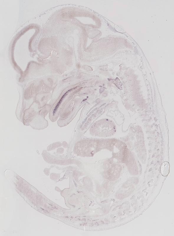 Reference: J:122989 Visel A, et al., GenePaint.org: an atlas of gene expression patterns in the mouse embryo. Nucleic Acids Res. 2004 Jan 1;32(Database issue):D552-6