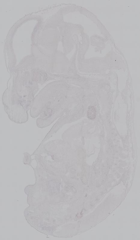 Reference: J:122989 Visel A, et al., GenePaint.org: an atlas of gene expression patterns in the mouse embryo. Nucleic Acids Res. 2004 Jan 1;32(Database issue):D552-6