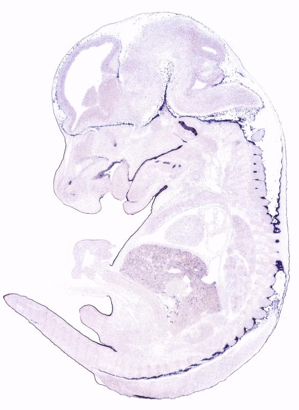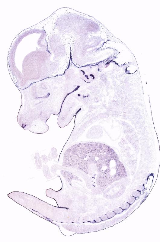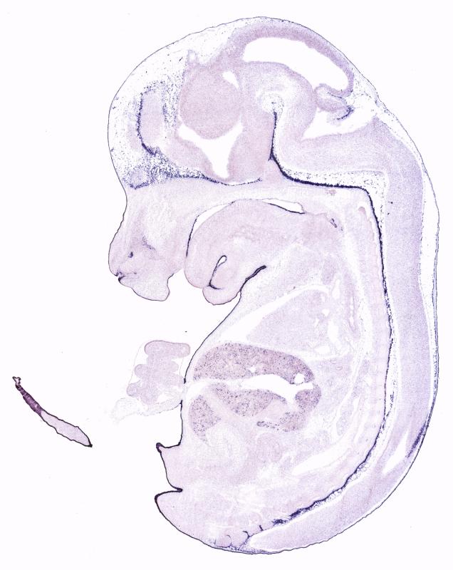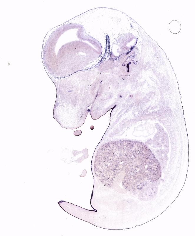 Reference: J:122989 Visel A, et al., GenePaint.org: an atlas of gene expression patterns in the mouse embryo. Nucleic Acids Res. 2004 Jan 1;32(Database issue):D552-6