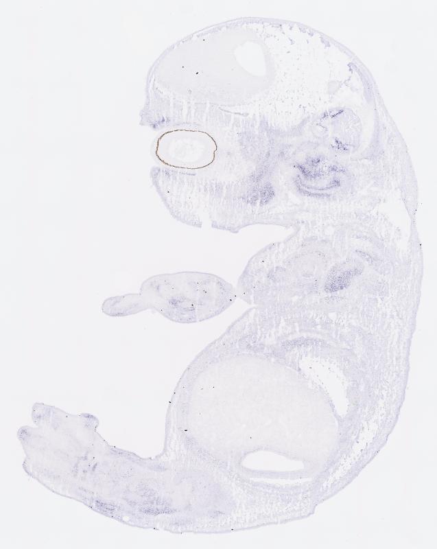 Reference: J:122989 Visel A, et al., GenePaint.org: an atlas of gene expression patterns in the mouse embryo. Nucleic Acids Res. 2004 Jan 1;32(Database issue):D552-6