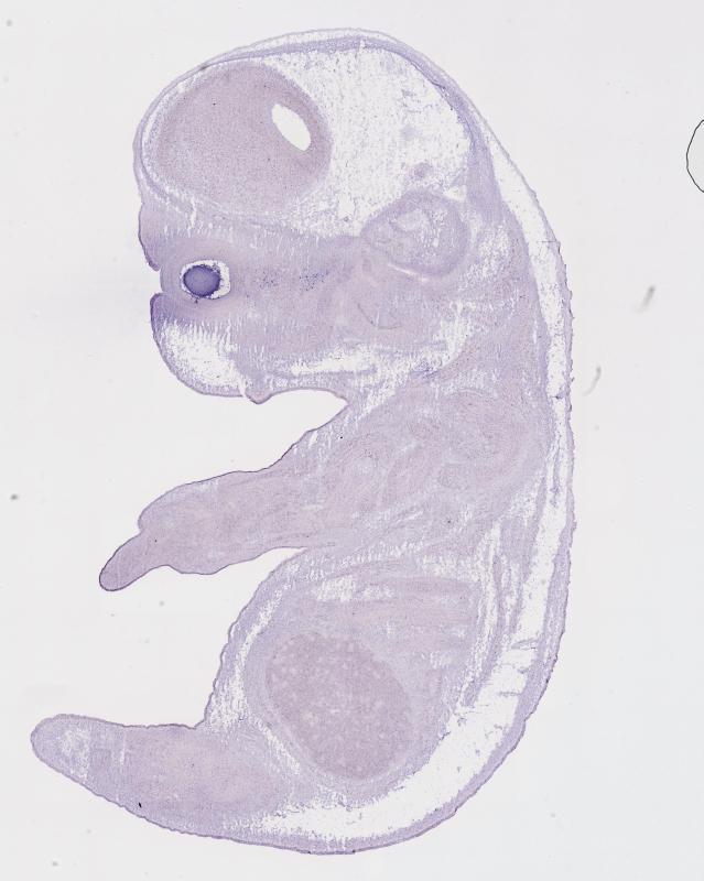 Reference: J:122989 Visel A, et al., GenePaint.org: an atlas of gene expression patterns in the mouse embryo. Nucleic Acids Res. 2004 Jan 1;32(Database issue):D552-6