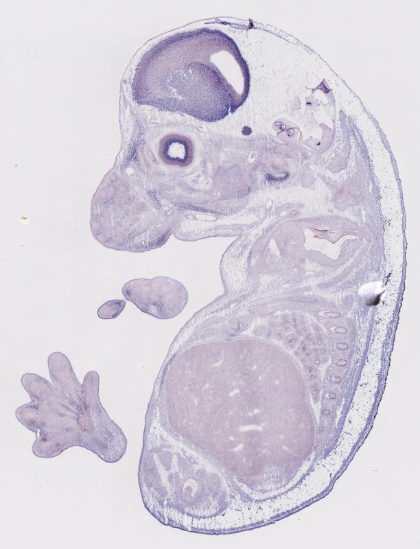 Reference: J:122989 Visel A, et al., GenePaint.org: an atlas of gene expression patterns in the mouse embryo. Nucleic Acids Res. 2004 Jan 1;32(Database issue):D552-6